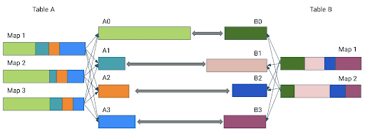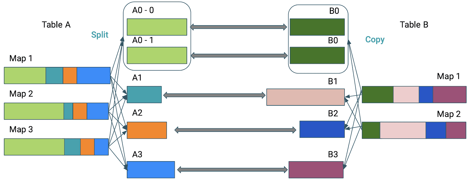 AQE๋ฅผ ํ์ฑํํ๋ค๋ฉด A0๊ณผ ๊ฐ์ skew data๋ฅผ ๊ฐ์งํ๊ณ ๋ ์์ ํํฐ์ ์ผ๋ก ์ชผ๊ฐ ๋ค. A0์ด ์ชผ๊ฐ์ง ๊ฐ์๋งํผ B0์ ๋ณต์ ๋๋ค.